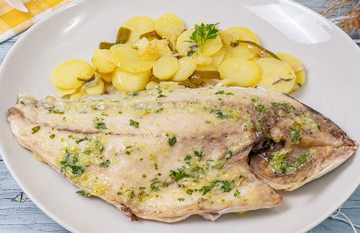 Voici la recette du Daurade au Four aux Pommes de Terre & Citron, un bon plat léger à base de poisson, parfumé à l’ail, au persil et au citron, idéal pour un repas sain et facile à préparer.