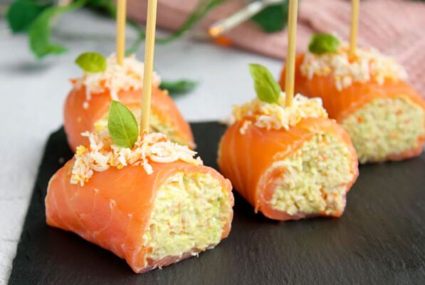 Voici la recette du Roulés de Saumon Fumé Garnis, ces délicieux roulés de saumon fumé garnis d’une farce légère au surimi, thon et avocat, rapide et idéale pour l’apéritif ou une entrée raffinée, prête en quelques minutes.